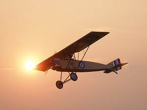 Aileron response is just unreal. At least 2 times faster than the Nieuport and maybe even faster. She's so well balanced that elevator control is not at all twitchy as Sweetie Kolb Twinstar. Now that Kolb is a pitch-sensitive little mother but the Morane just does what you want, when you want and doesn't bitch about it at all.